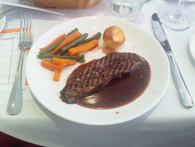 goat’s cheese on toast with olive oil a tasty start. The second was sautÈed king prawns on artichoke cream & chivet, an unusual
